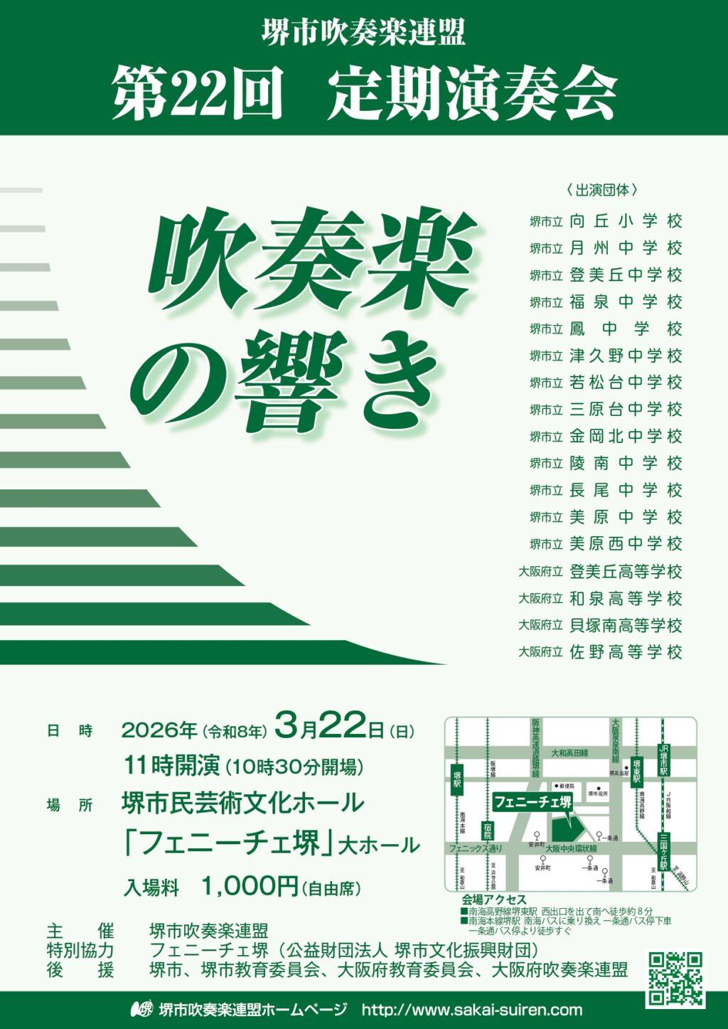 堺市吹奏楽連盟加盟団体による “フレッシュな吹奏楽の響き”をお楽しみください♪